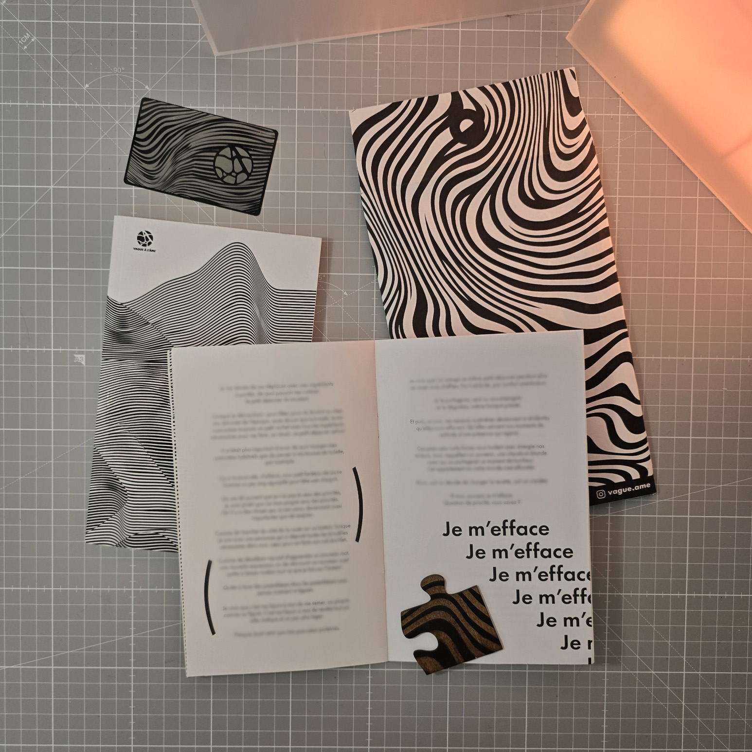 Tous les mois, dans une belle enveloppe manille, vous recevrez un chapitre de mon livre éponyme, broché-piqué de mes mains (oui), signé et numéroté. Ainsi que la version audio de ce chapitre et qu’une pièce d’un puzzle (littéralement) à reconstruire.